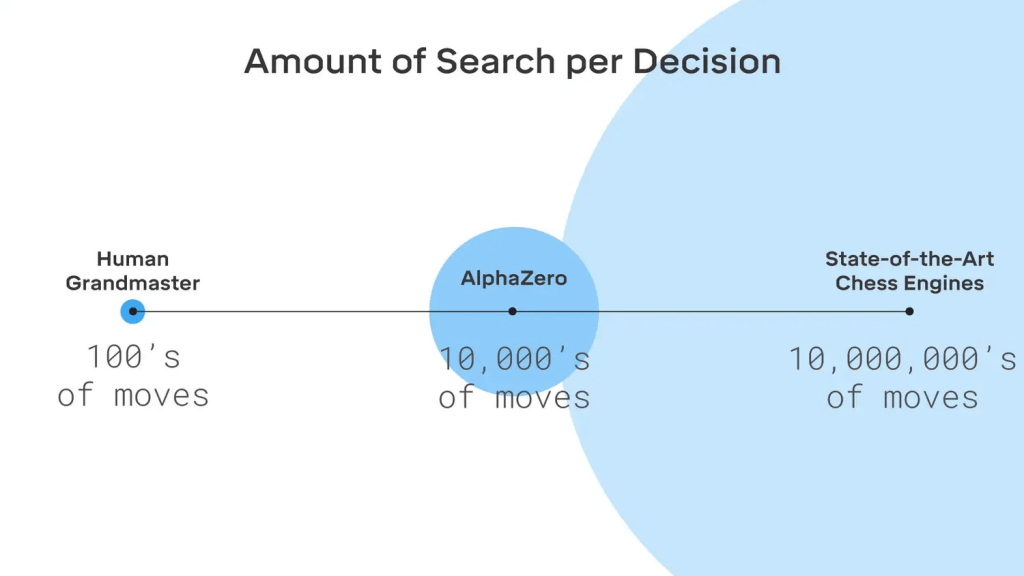AlphaZero is also much more efficient than previous versions. Writing about AlphaZero, Google DeepMind said: “For each move, AlphaZero searches only a small fraction of the positions considered by traditional engines. In Chess, for example, it searches only 60 thousand positions per second, compared to roughly 60 million for Stockfish [one of the best similar algorithms].”